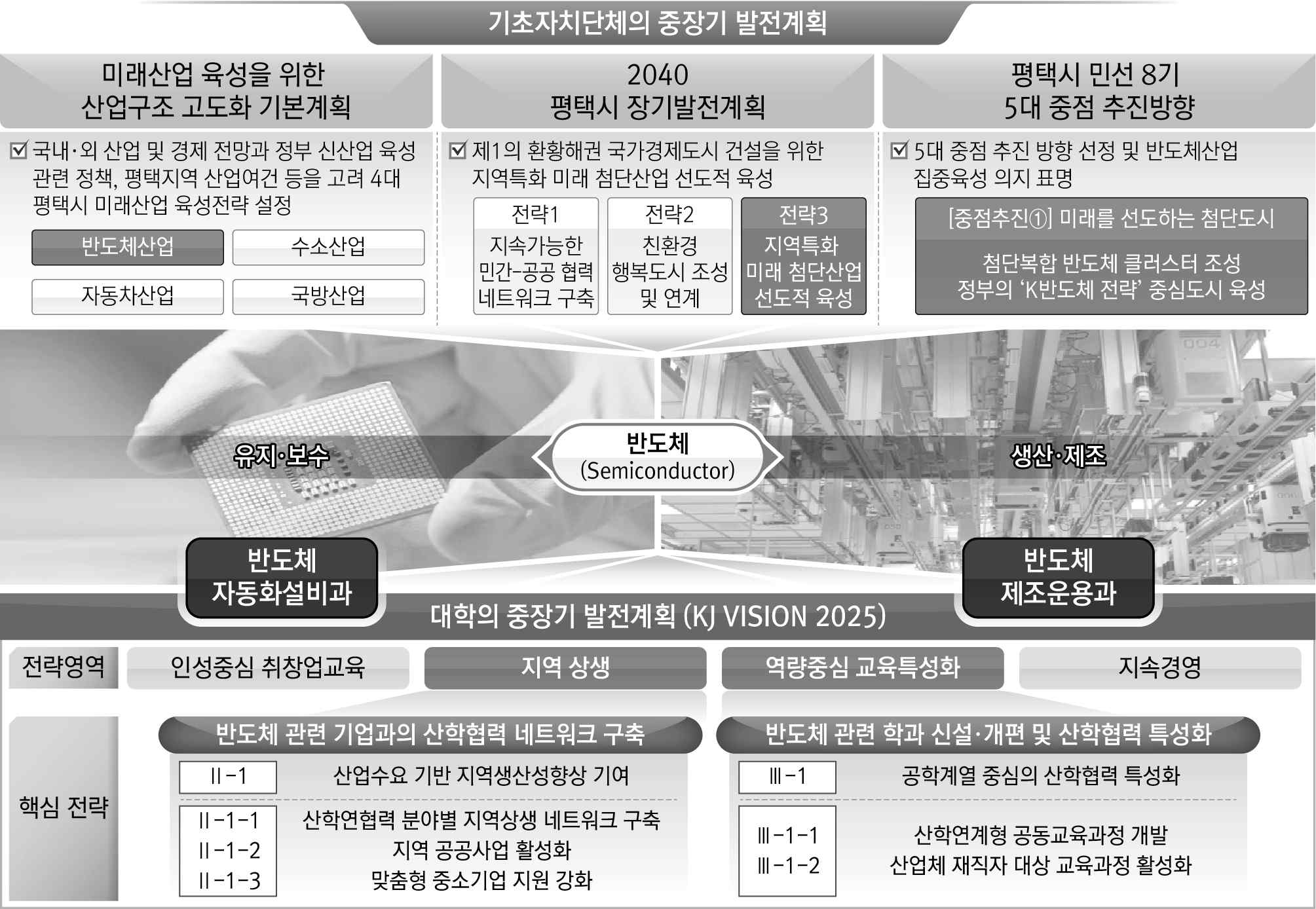 국제대학교는 중장기 발전계획 KJ VISION2025를 통해 산업수요 기반 지역생산성향상기여하고. 공학계열 중심의 산학협력 특성화 전략을 추진 중이며, 이에 따라 2024학년도에 반도체제조운용학과를 신설하여 지역 특화산업 분야인 반도체산업에 대한 고등직업교육거점 역할을 수행할 수 있는 대한민국 반도체 대표학과로 운영함.