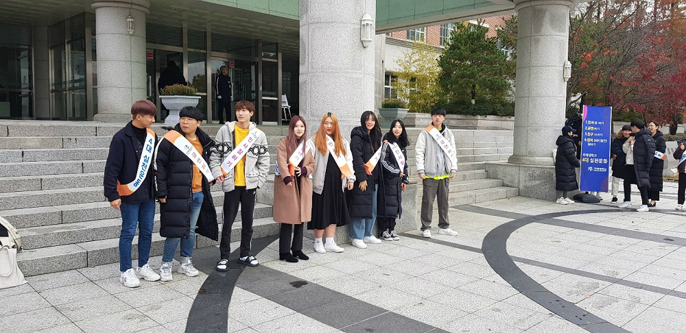 - 한 학기를 마무리하는 학생들에게 마지막까지 4대 실천운동의 중요성을 강조하기 위하여 총학생회 및 학과 임원들이 참여하여 아침부터 홍보활동을 함. - 바른 인성과 옳은 가치관의 중요성을 알리기 위하여 국제대학교는 앞으로도 지속적으로 4대 실천운동을 진행할 예정임. - 국제대학교는 학벌과 경쟁사회에서 인성교육이 가지는 가치를 학생들에게 알려주고자 함. |