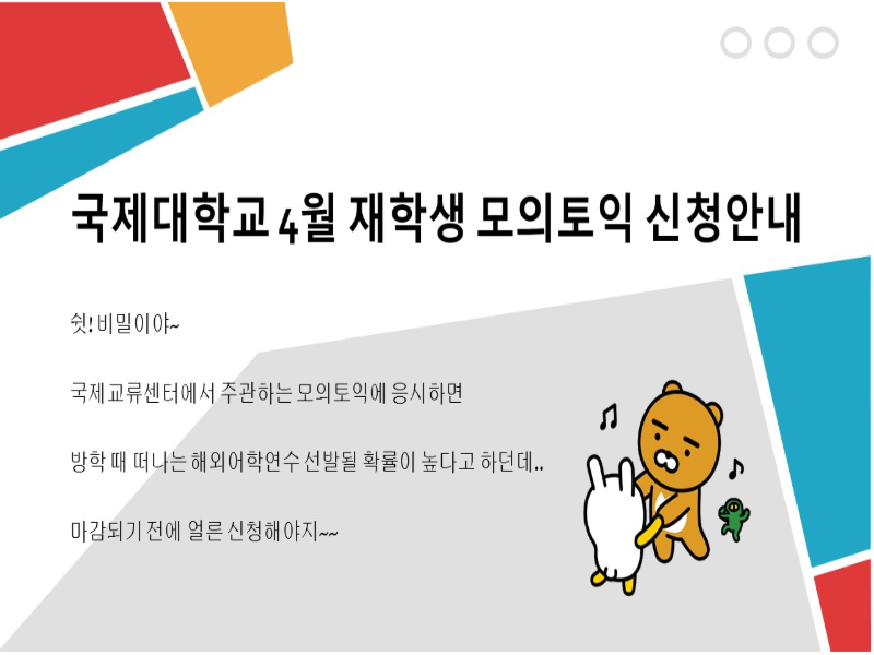 3. 장소 : 국제대학교 예지관 국제교류센터 사무실
