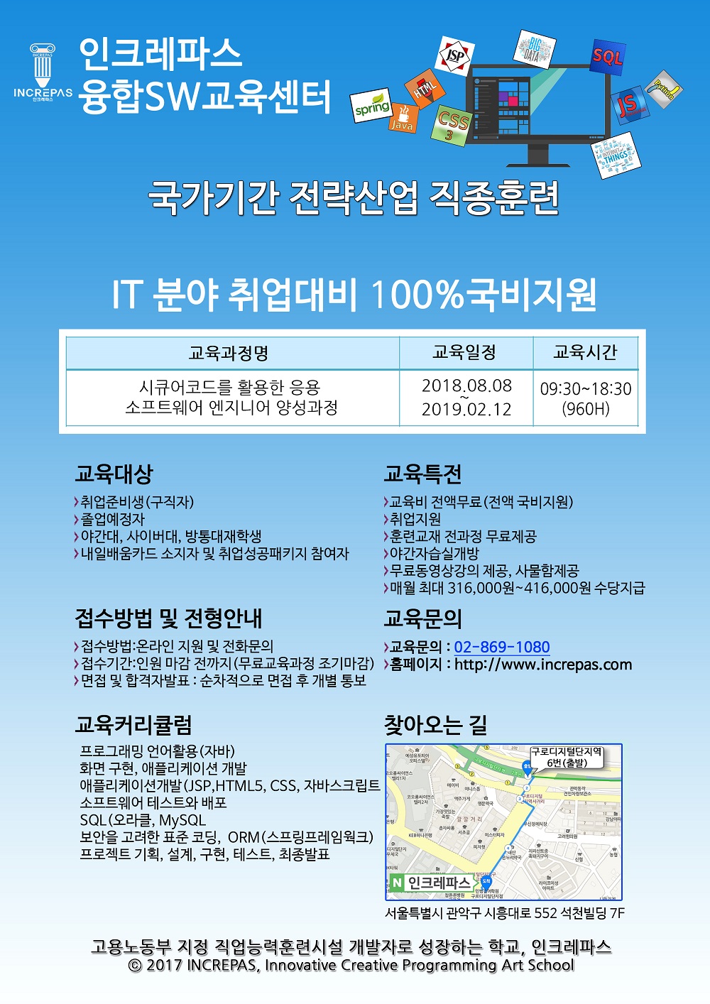 [대학일자리센터] 인크레파스 융합SW교육센터 국가기간 전략산업 직종훈련 모집