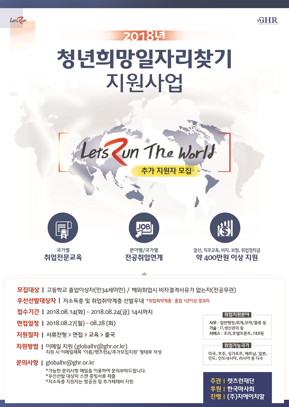 [대학일자리센터] GHR 청년희망일자리 찾기 지원사업(렛츠런더월드) 프로그램 추가 모집