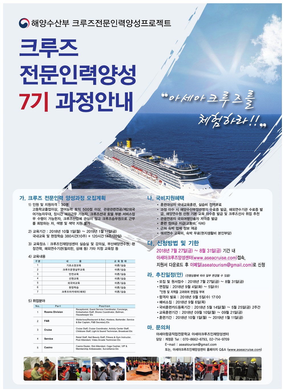 [대학일자리센터] 아세아 크루즈전문인력양성과정 7기 모집