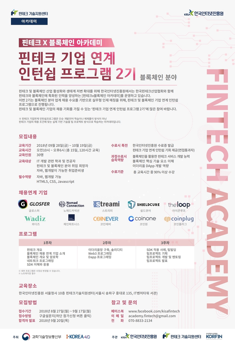 [대학일자리센터] KISA아카데미 핀테크 기업 연계 인턴쉽 프로그램 2기 모집
