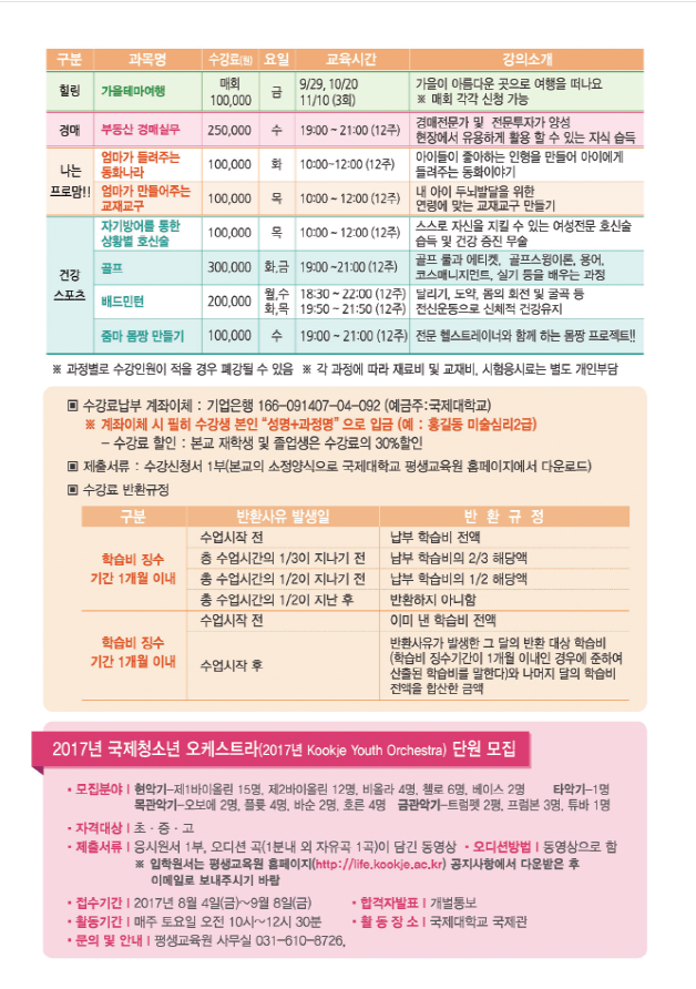 2017 가을학기 일반과정 , 학위과정 (학점은행제&시간제) 모집안내
