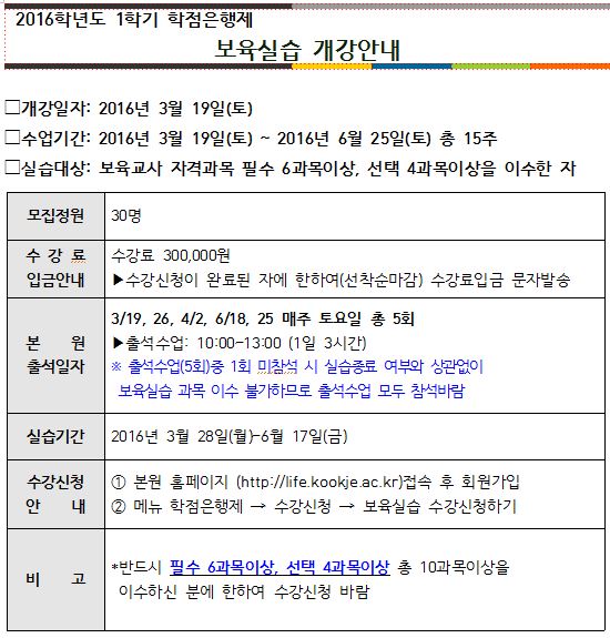 [2016학년도 1학기] 평생교육실습 수강신청안내