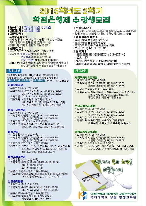 2015학년도 2학기 학점은행제 및 시간제등록제 수강생모집